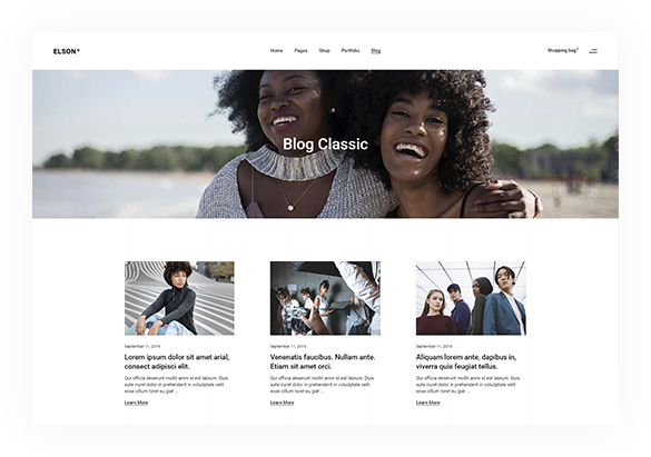 If you wish to attract audiences by starting a blog, Elson surely has you covered. Connect with your readers thanks to a captivating selection of blog list and single post templates included with the theme.