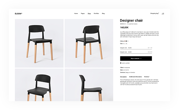 On top of getting an extensive collection of practical shop elements with Elson, you can also rest assured that your website pages will be real head turners. You get stunning shop lists, single product layouts & more.